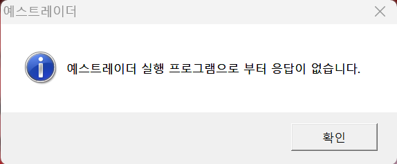 예스트레이더 실행 프로그램으로 부터 응답이 없습니다.