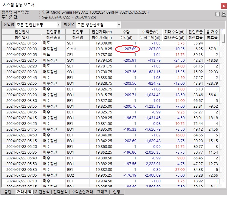 2. 각거래에서 수익이 난 거래도 손실로 계산 되는 것 같습니다.