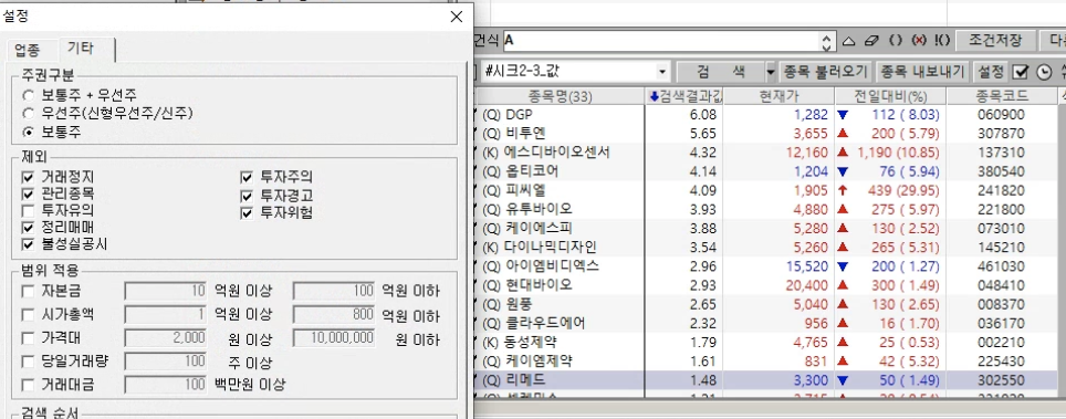 그러므로 당일 거래대금등 지정하셨다면 해당 조건이 적용됩니다.