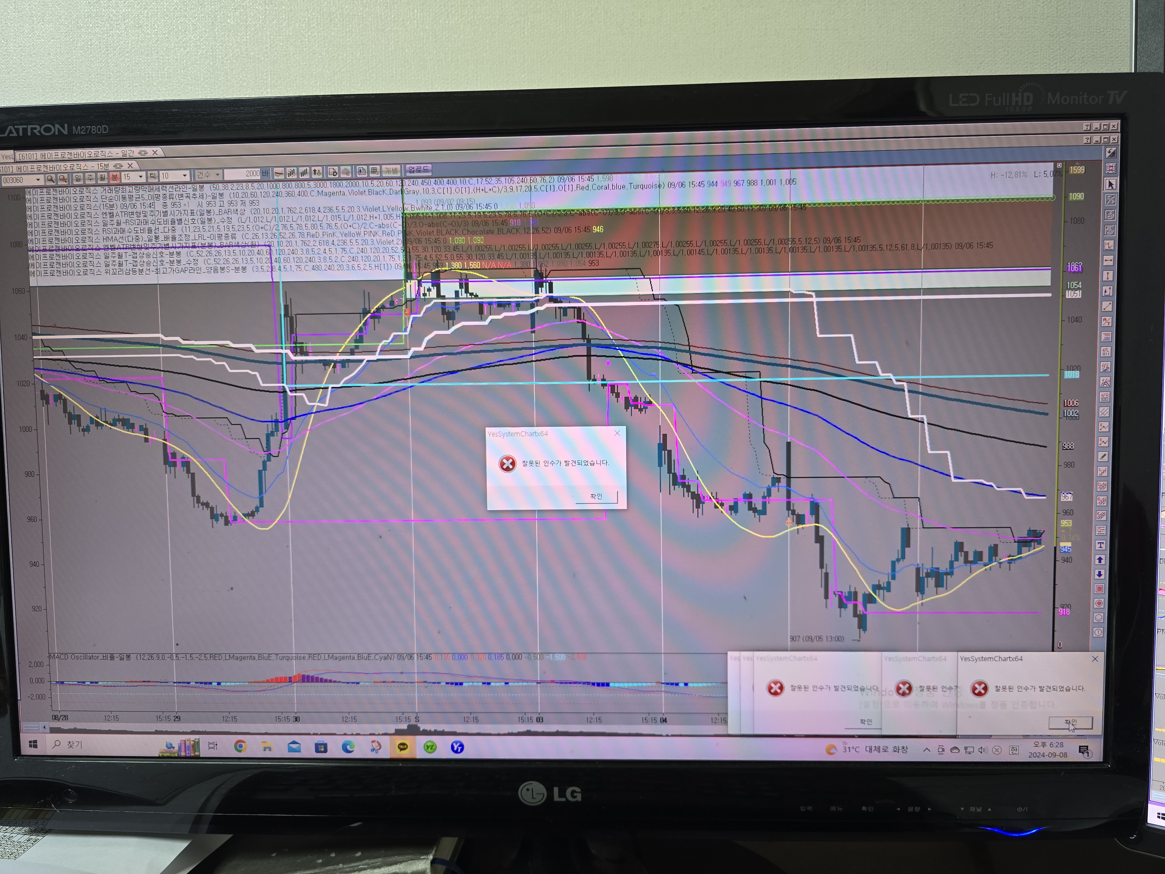 문제는 이런 번거로움을 하는 건 견딜만하나 화면을 변경하다보면 기존수식의 변경에 따른 문제로 인하여 첨부파일의 내용처럼 <잘못된 인수가 발견되었읍니다>라는 팝업창이 적게는 수십에서 많게는 수백번 더 나아가 끝도 없이 팝업창이 나옵니다. 이를 해결하기위해 첫째는 계속해서 팝업창을 제거해가는 방법으로 하는데요 이게 해도해도 끝이 나지 않아 PC를 강제 종료후 재부팅하는 방법으로 하다보면 기설정 차트내용이 없어지는 경우도 생깁니다. 또한 팝업창을 없애가는 과정에서 그냥 프로그램이 종료되기도 하죠....