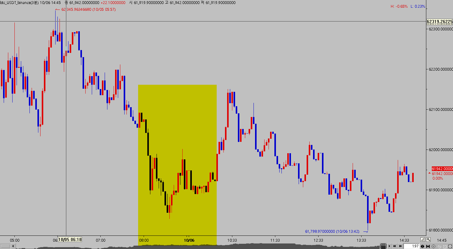 10월 5일 오전 09:03~ 10월 6일 09:30분까지 캔들이 차트에 없습니다.