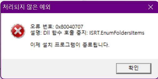> 제목 : 설치 시 오류