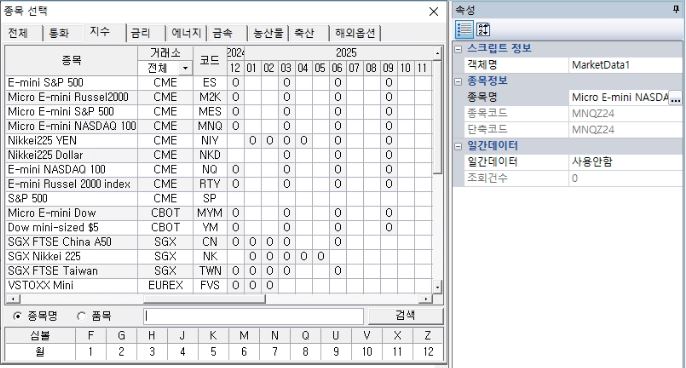 예스스팟 MarketData1에 들어갈 종목코드는 분기별로 매번 새로 지정해줘야 하는거 같아요.