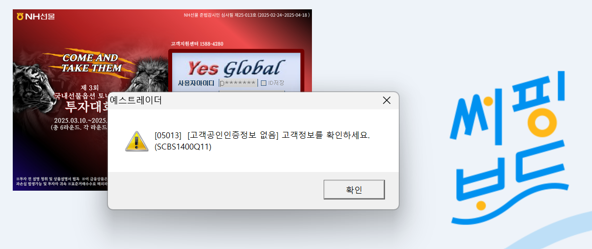NH선물을 새로 가입해서 NH해외선물용 HTS 서핑보드는 로그인이 되는데