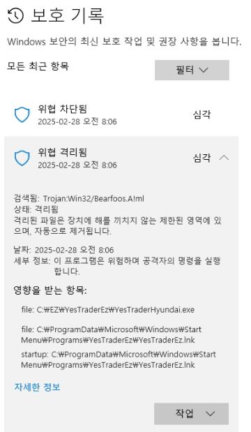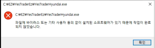 이상해서 종료 후 다시 로그인을 해보니 첨부파일과 같이 바이러스 또는 사용자 동의 없이 설치된 소프트웨어가 있다고 뜹니다.