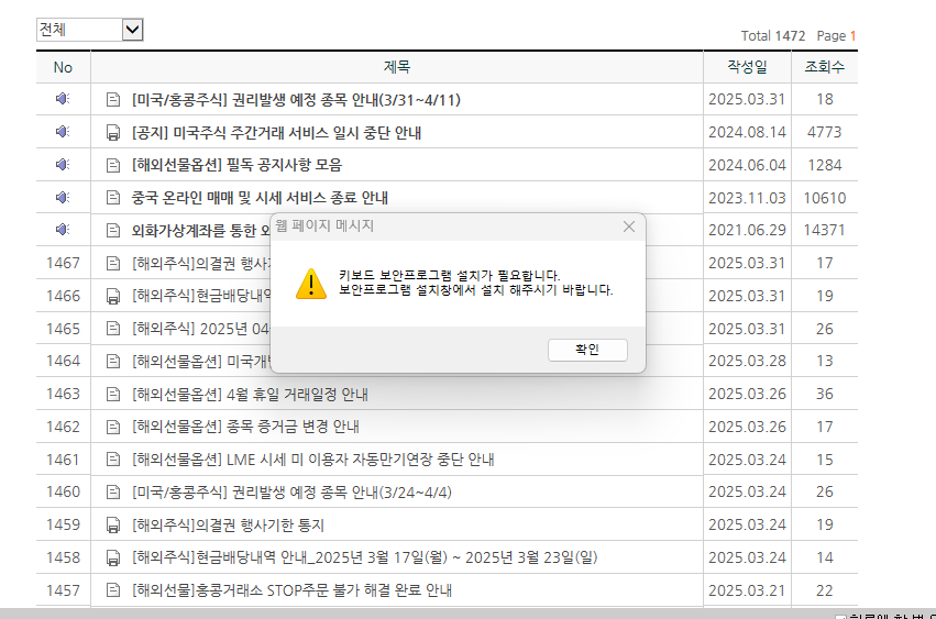 안녕하세요? 예스스탁입니다. 사용에 불편을 드려 죄송합니다. 해당 메시지는 무시하셔도 되는 메시지입니다. 이 부분은 저희가 수정해서 해당 메시지가 발생하지 않도록 해결하겠습니다. 감사합니다. > 와우리 님이 쓴 글입니다. > 제목 : 이걸 어디다가 적어야 할지를 몰라... > 설치를 해도 계속해서 설치를 하라고 일주일째 뜨고 있습니다 크롬에 LS 이구요 우찌 해야 할까요