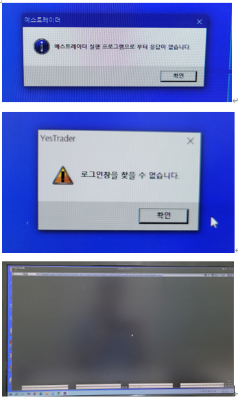 예스트레이더 접속시 첨부와 같은 오류가 발생하였습니다.