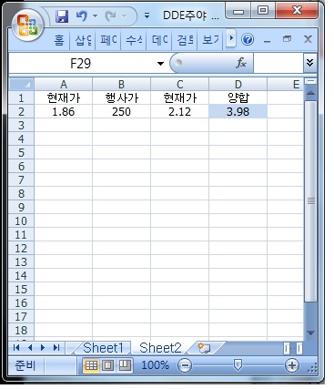 Topic : [DDE주야.xlsx]sheet2