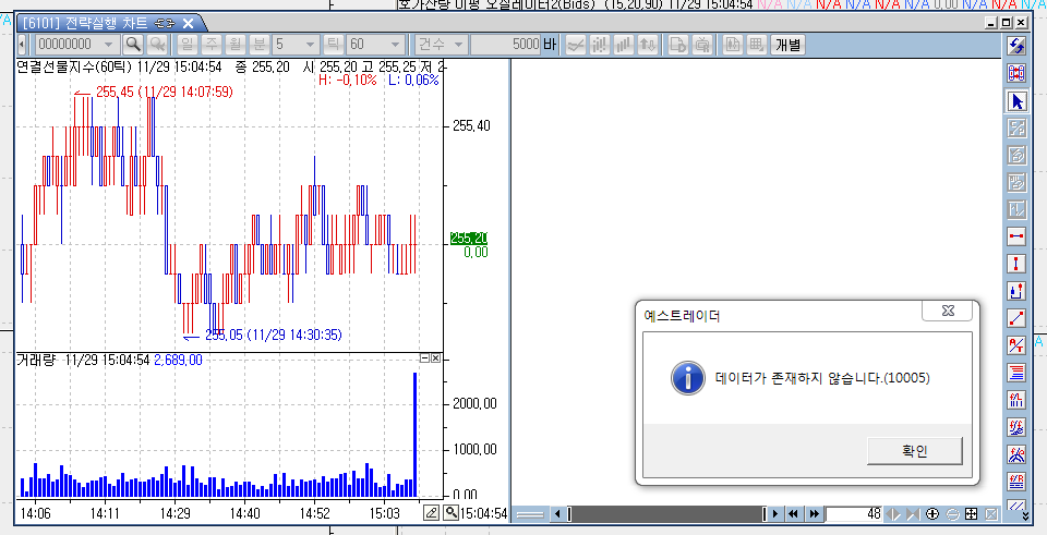 장이 시작이 된후에 챠트를 다시 열어야만 됩니다