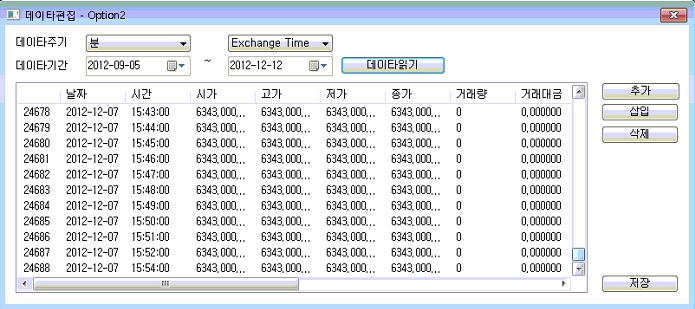 물론 10,11,12일 데이타도 다 7일 이전처럼 장중에 다 실행해서 쌓여 있어야 정상인데요...