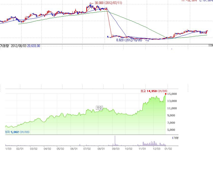 첨부 화면을 보면 2012년 차트 인데 8월3일 이전의 시세가 맞지 않네요