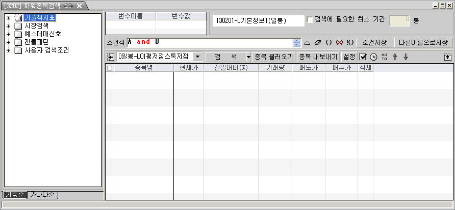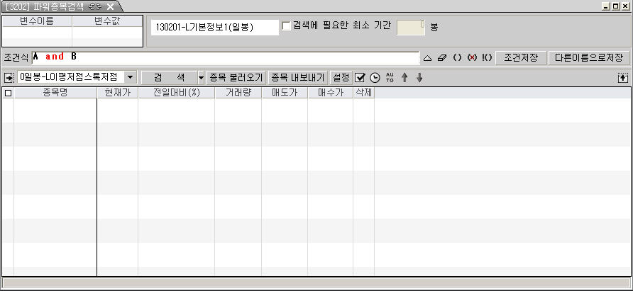 파원종목검색에서 그림2와 같이 이전에 사용했던 형태(모습)을 시스템을 다시 시작할때