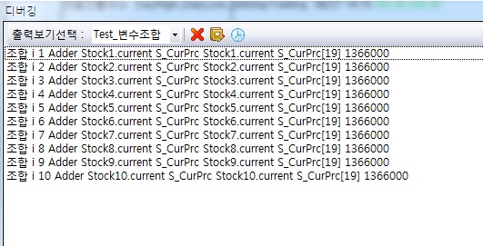 이 종목의 현재가를 for로 처리하여 배열에 저장하는 수식을 만들려고 했는데