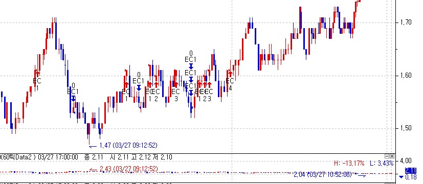 시스템상 첨부그림처럼 PYRAMIDING_ENTRY, 로 설정되어서 서로 다른신호의 진입을 해야 하는데, 확장챠트상 같은 신호가 진입됩니다.