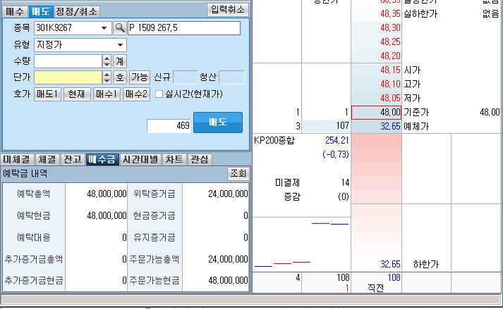 > 제가 오늘 9월물 풋 267.5 에 1계약 매도주문을 넣어봤습니다.