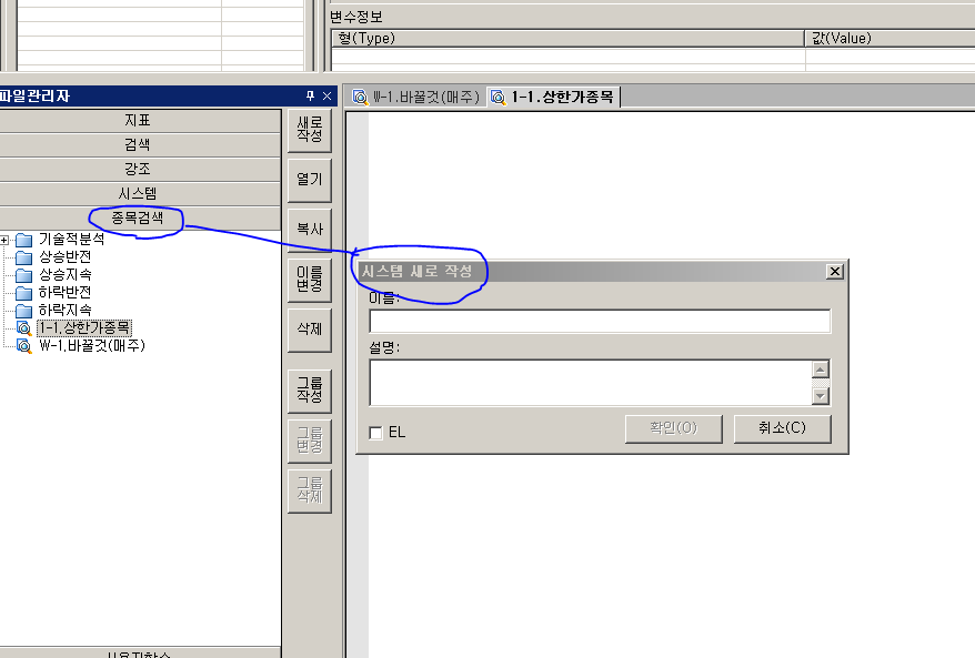 수고하십니다... 예스랭귀지 에서 종목 검색식 새로만들기 하면 시스템 새로만들기로 됨 수정 부탁드립니다
