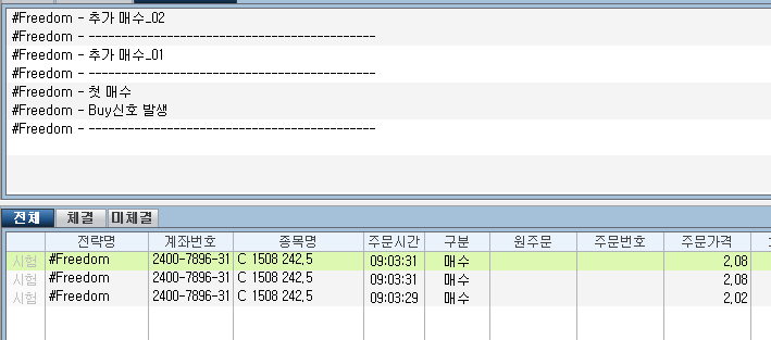진입및 청산을 시장가로 부탁드리겠습니다.