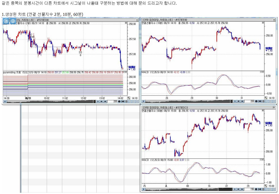 > 제목 : 같은 종목의 분봉시간이 다른 차트에서 시그널이 나올때 구분하는 방법에 문의