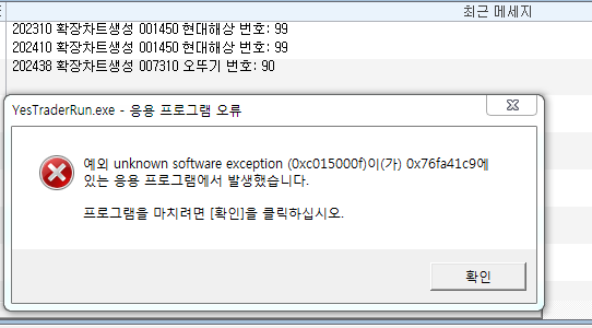 확장차트 288번째 생성 중 다운되면 첨부와 같은 오류가 발생합니다.