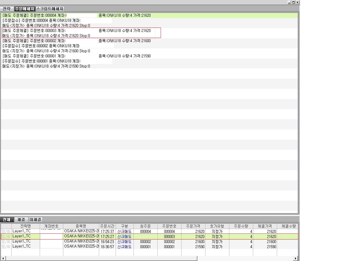 1. 매매시간[17:25:27] 신규 매도 진행[주문번호:000003]