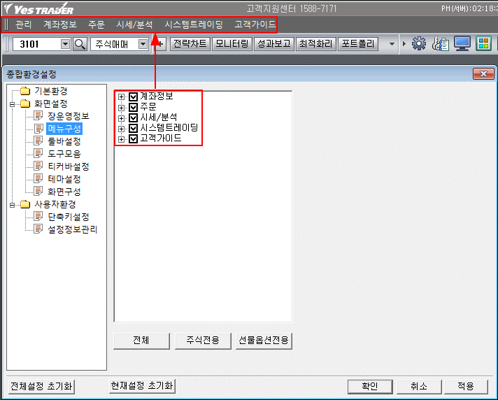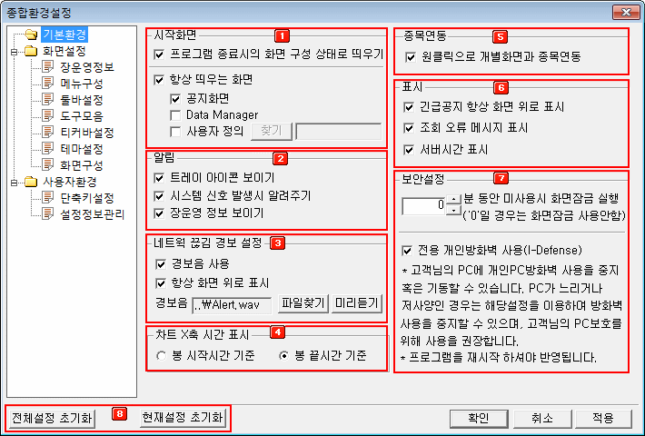 "종합환경설정"을 통해 자신에게 최적화된 매매환경을 구축할 수 있습니다.