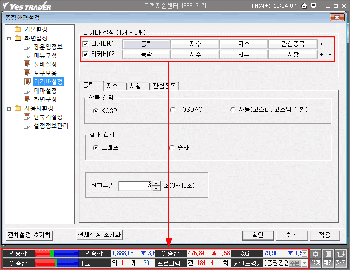 YesTrader를 보다 효율적으로 사용하기 위하여 다양한 환경설정 기능을 제공합니다.