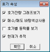 ② 버튼을 클릭해서 호가정보 영역의 화면표시 속성을 변경할 수 있습니다.