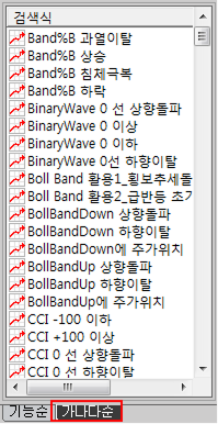 파워종목검색' 화면에서는 조건 리스트에서 선택한 여러 조건을 조합하여 검색할 수 있습니다. 각종 '기술적지표, 시장검색, 캔들패턴' 등 기본적으로 다양한 조건검색식을 제공하고 있으며, YesLanguage편집기를 이용해 작성한 '사용자 검색조건' 기능을 제공해 사용자가 자신의 매매스타일에 최적화된 자신만의 조건검색식을 만들어 실시간으로 조건에 부합되는 종목을 검색할 수 있습니다.