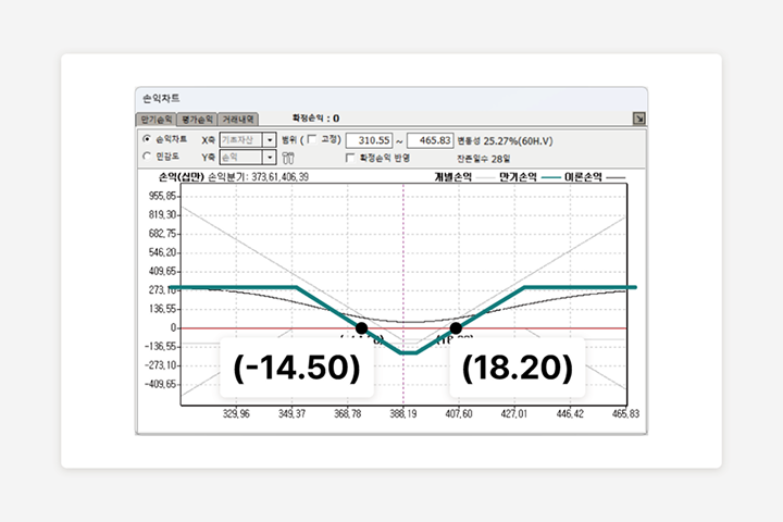 과거 시세를 기반으로 다양한 옵션 합성 전략을 실전처럼 검증할 수 있는 전문 시뮬레이션 도구입니다.