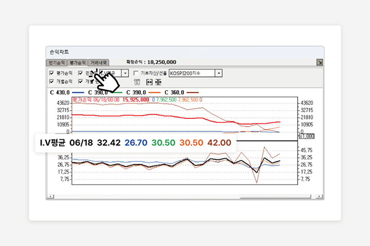 다양한 선물, 옵션 포지션을 직접 설계하고, 과거 시세에 적용하여 전략의 수익성과 안정성을 체계적으로 검증할 수 있습니다. 옵션 투자에 필요한 스프레드 전략부터 복잡한 합성 전략까지 정확하게 테스트 가능합니다.