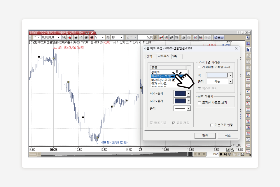 차트, 배경, 지표 등 모든 요소에 개별 설정으로 적용할 수 있으며, 여러 차트에 지표나 전략을 한 번에 적용하거나 삭제할 수 있어 원하는 분석 환경으로 효율적으로 구성할 수 있습니다.
